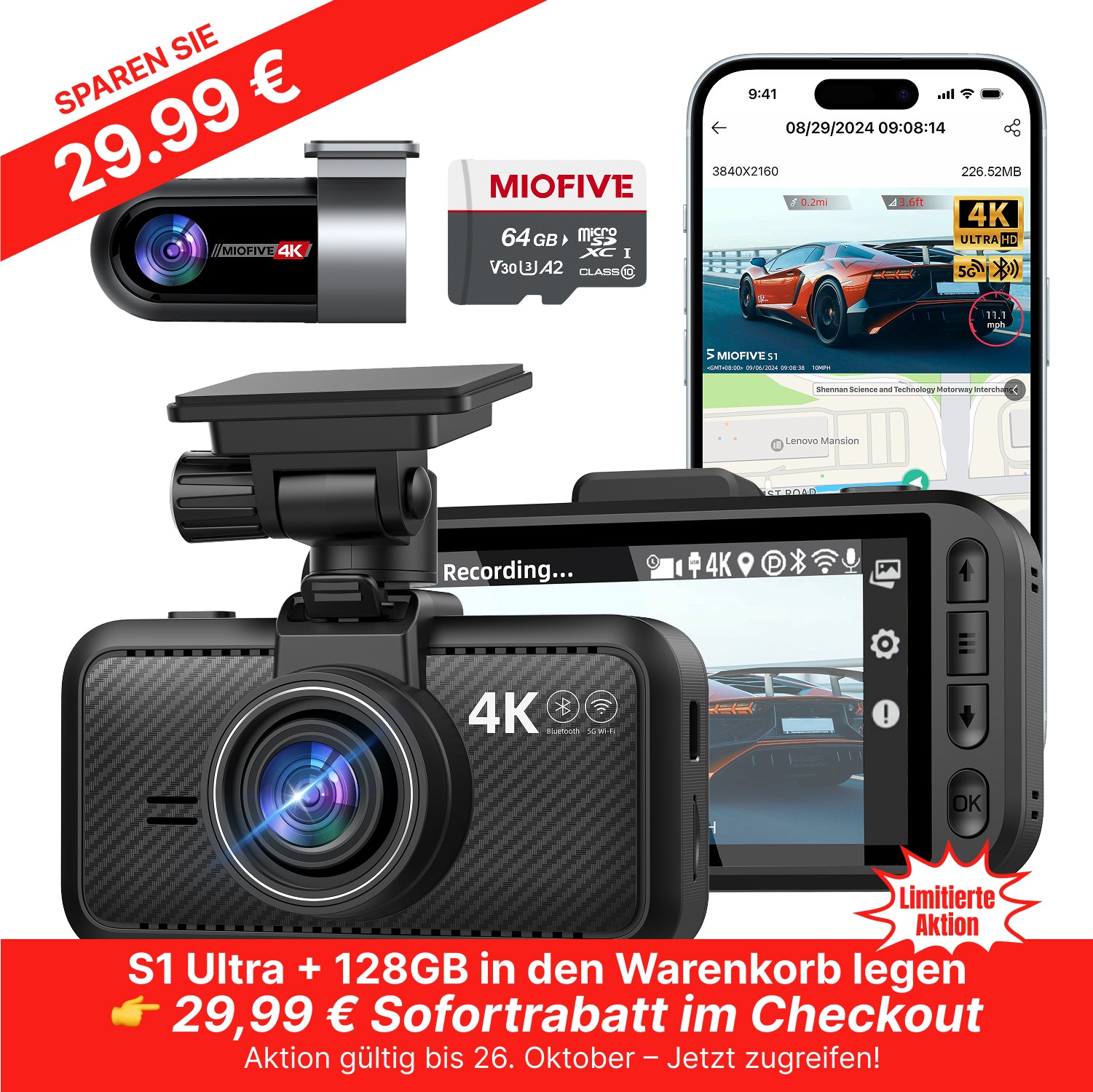 • 4K-Auflösung: Die Bildqualität der Front- und Rückkamera ist beeindruckend. Die Videos sind scharf und detailliert, sowohl tagsüber als auch nachts dank HDR und Super-Nachtsicht.